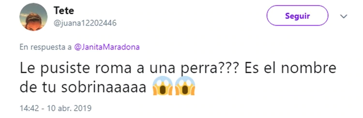 "¿Le pusiste Roma a una perra? (En verdad, es una gata). Es el nombre de tu sobrina", se sumó otra.