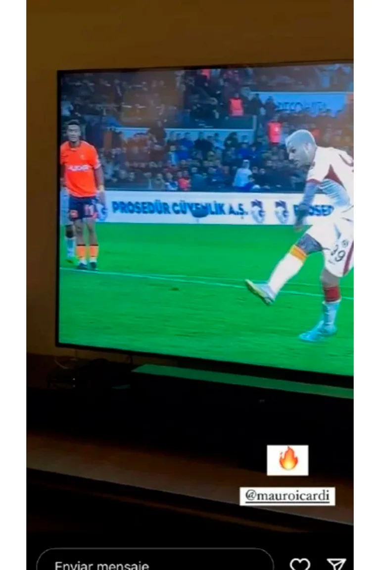 En sus redes sociales, la ex investigadora de ¿Quién es la Máscara? compartió la foto de su televisor en el momento en que estaban emitiendo el partido del Galatasaray, el equipo donde ahora juega el rosarino, y él convierte un gol. Pero la atención de su posteo no se lo llevó la mencionada foto, sino que ella la acompañó con el emoji de un fuego.