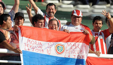 "Moria devolvé la joya", era el mensaje escrito en una bandera de Paraguay.