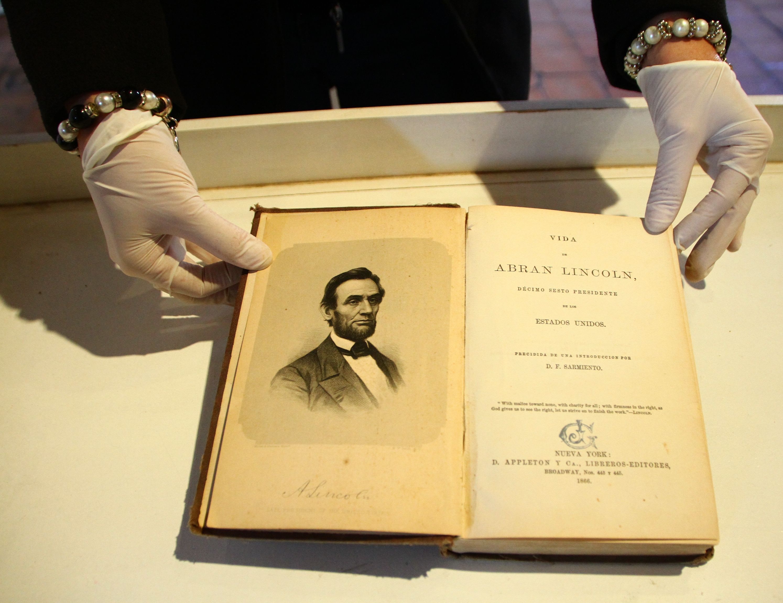 Pero la funcionaria subrayó que la joyita de esta exhibición es un volumen que el expresidente de la Nación envió a su otra hermana, Bienvenida, sobre el legendario mandatario de Estados Unidos, titulado La Vida de Lincoln, del cual él se encargó de hacer su introducción, presentación y traducción al español en 1866, cuando fue Ministro Plenipotenciario en Estados Unidos.