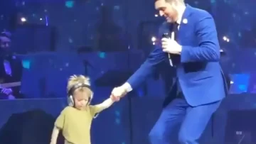 En las últimas horas, quien acompañó a su papá fue Elías. A través de varios videos se puede ver el talento del niño, que se mueve al compás de Bublé y su música. Con los auriculares puestos y las zapatillas puestas causó sensación.