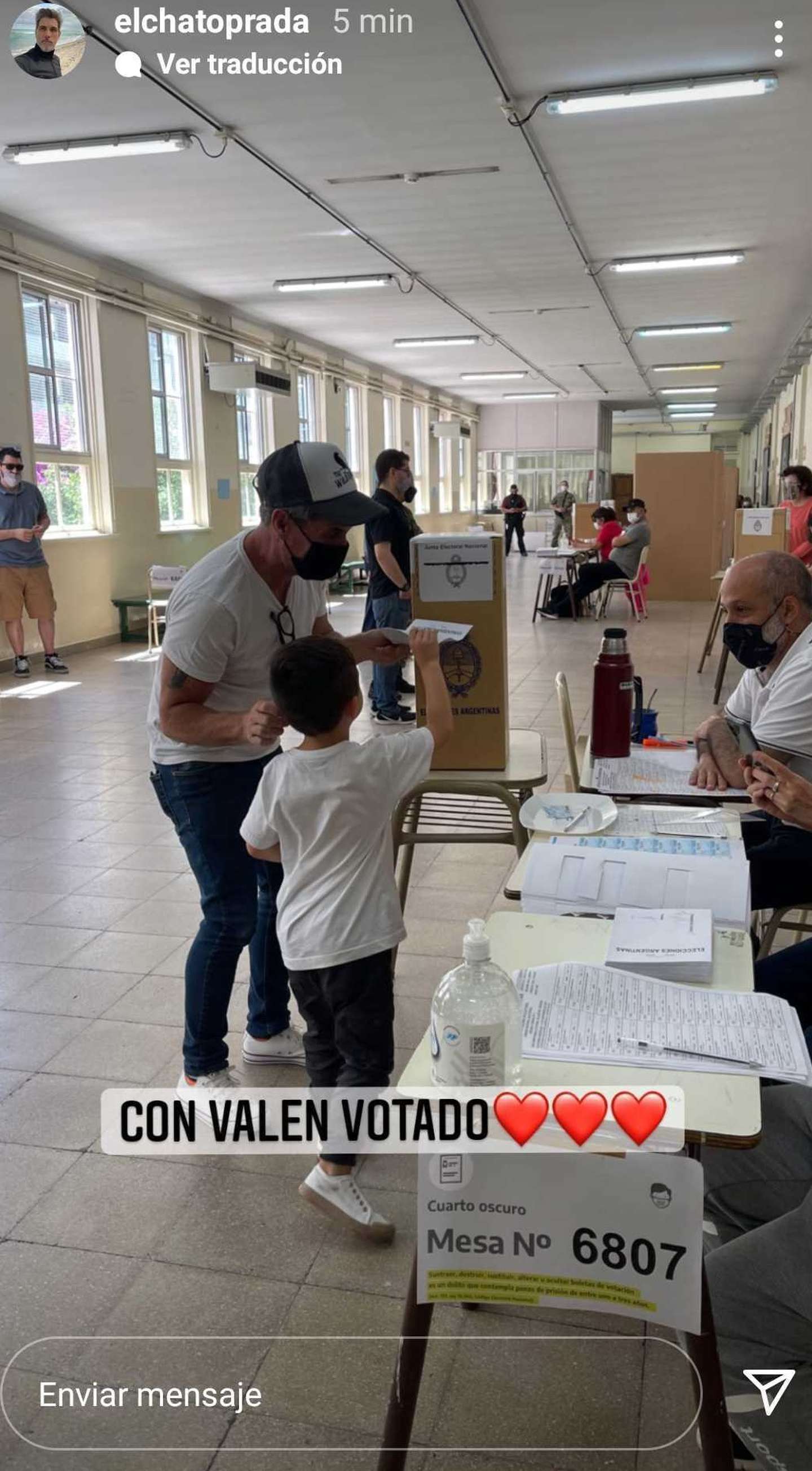 El Chato Prada, por su parte, ingresó al cuarto oscuro con un “intruso”: su hijo Valentín.