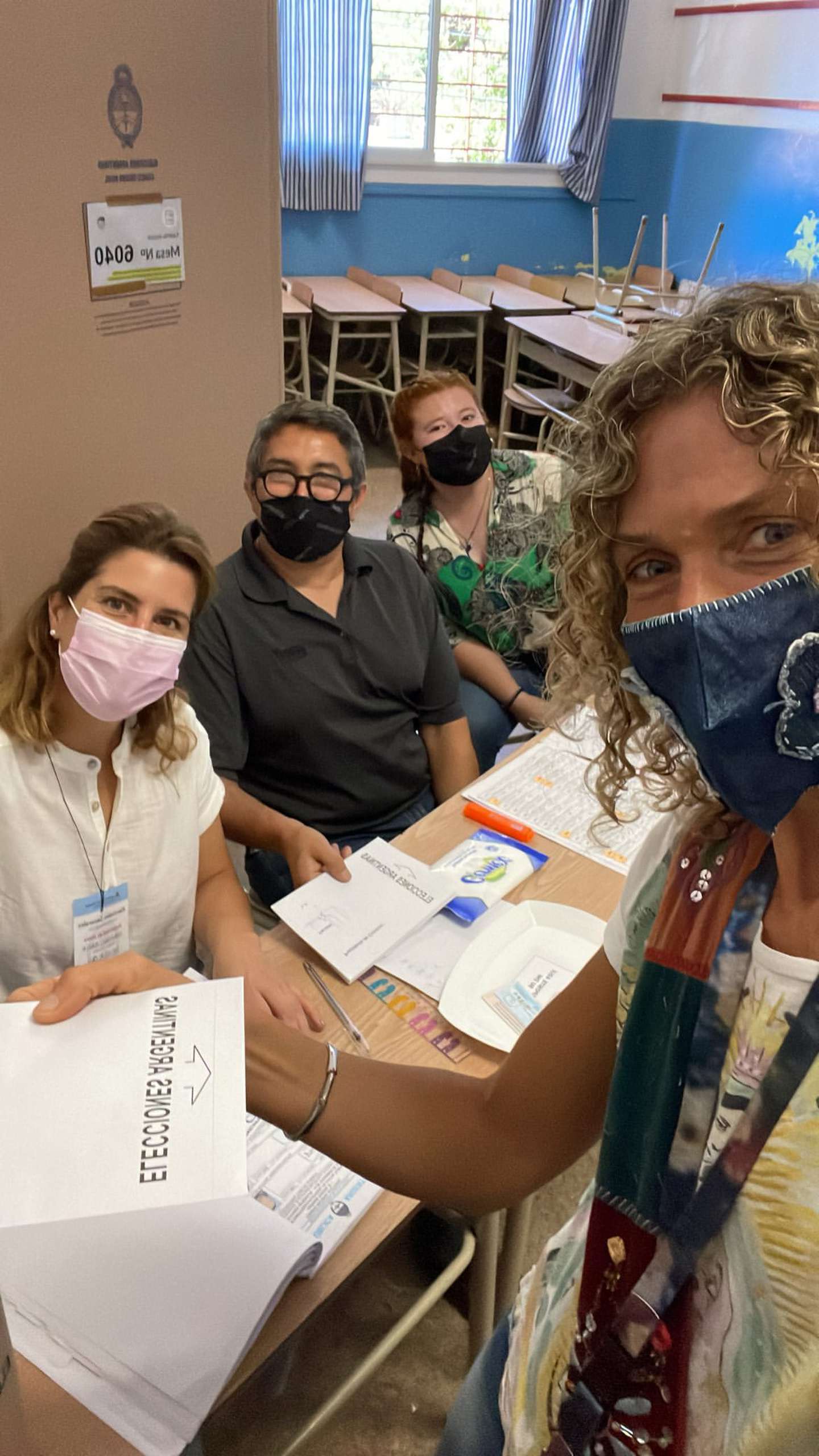 Maru Botana se dirigió al colegio que le asignaron y les llevó pan dulce a las autoridades de mesa. “Gracias Maru, qué divina”, le dijeron.
