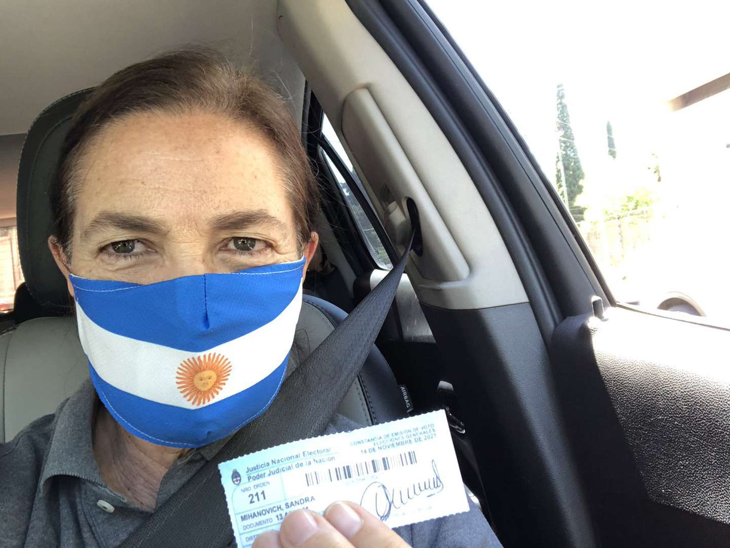 “Votar. Poder elegir. ¡¡¡Qué felicidad!!! Aguante Argentina. Gracias, siempre gracias”, exclamó Sandra Mihanovich con su comprobante de votación en mano.
