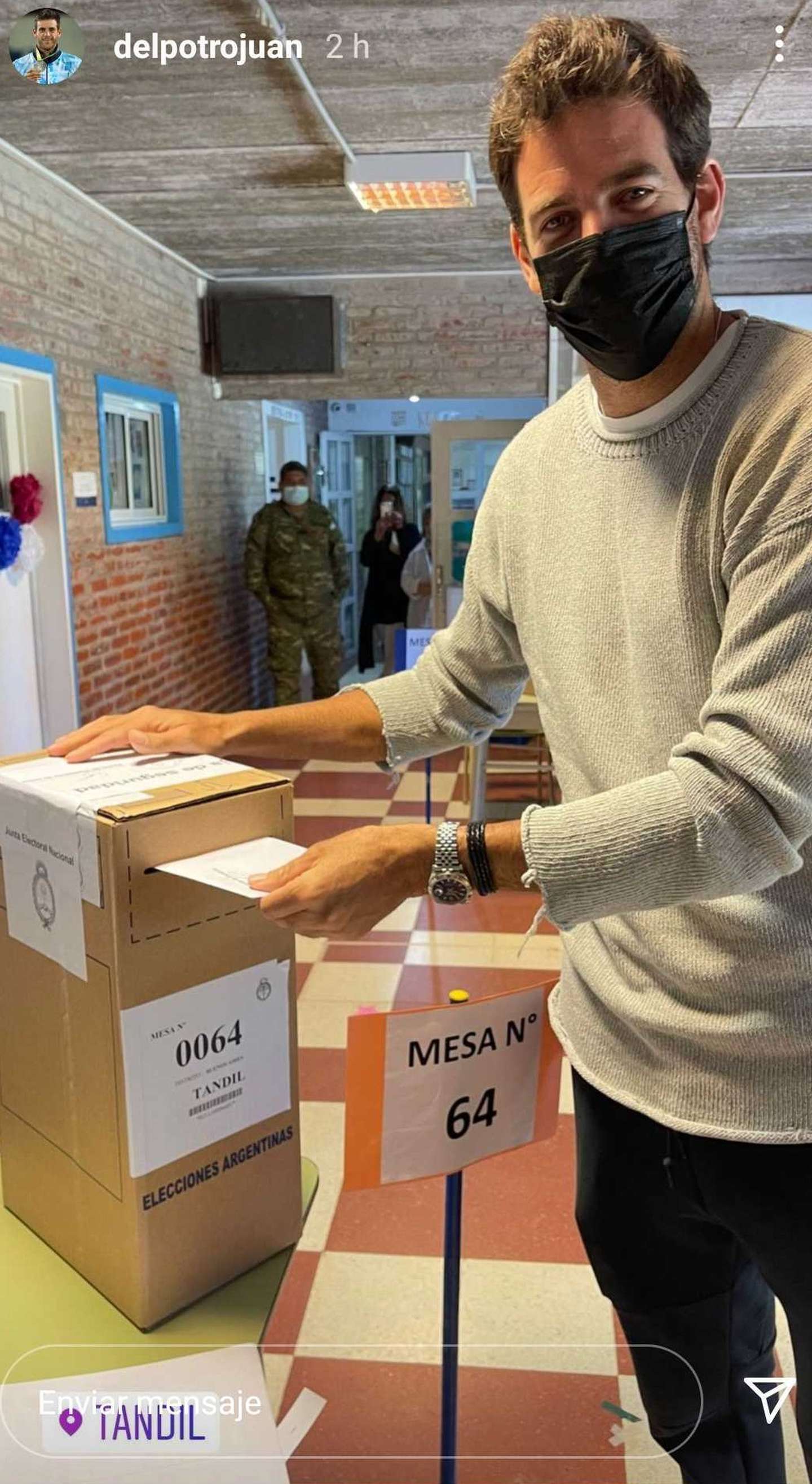Juan Martín del Potro votó en su Tandil natal y también compartió una postal para sus fans.