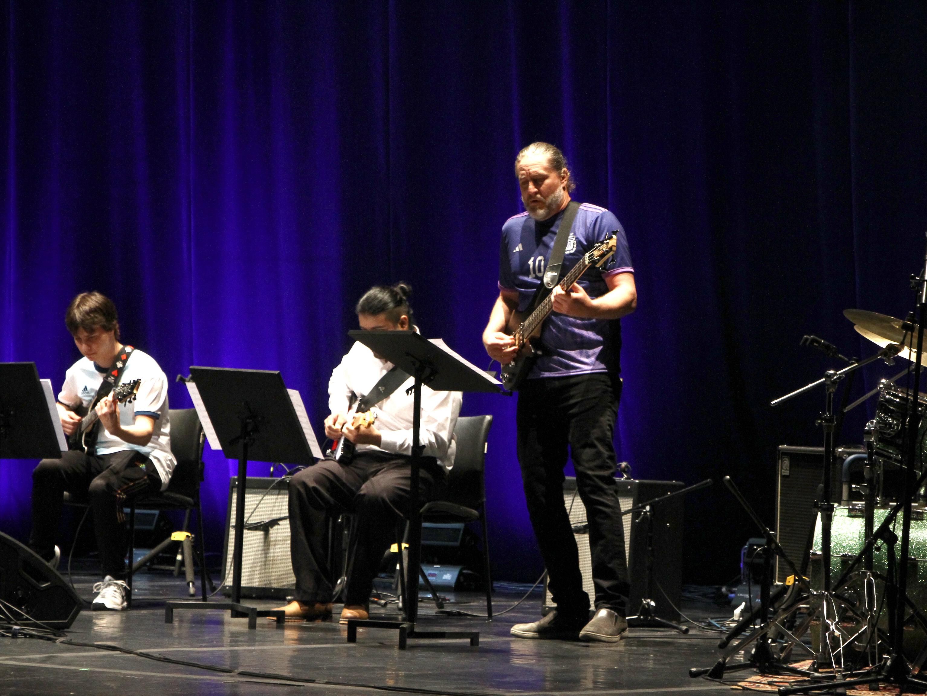 La tarde estuvo inevitablemente atravesada por el triunfo de la Selección argentina en Qatar y muchos de los músicos llegaron enfundados en la camiseta albiceleste. Incluso, Corey Christiansen, el guitarrista norteamericano de Indiana, llevaba una con el nombre de Messi.