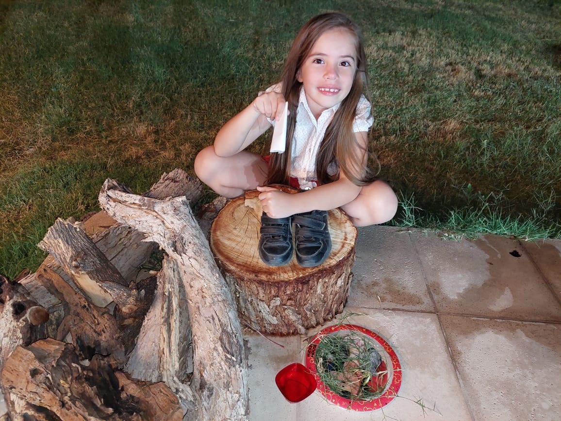 "No les pedí nada, esta vez porque Papá Noel me trajo un montón de regalos’, dijo la nena quien en sus zapatos pone las cartitas que hace "solita’, además de apartar comida para los Reyes, agua y pasto para sus camellos.