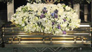 Sobre un estrado la familia hizo colocar gran cantidad de flores blancas y afiches con imágenes del fallecido.