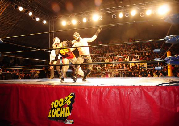 ¿Cómo entretener a un niño y entusiasmarlo por dos horas? Simple: llevándolo a un arengado show de catch. Es que pasadas las 20 horas de ayer, la "Batalla Campal" de 100% Lucha impregnó de acción al Club Deportivo Aberastain de Pocito y logró un divertido espectáculo familiar con destino solidario -y escandaloso, porque mucha gente quedó afuera y no disimuló su enojo en la puerta del predio-. Abarrotado de grandes y chicos -chicuelos de 5 años, padres y hasta la presencia del Gobernador Gioja) y con la hiperquinética conducción de Eduardo Husni, el cuadrilátero que se desprende del dominical programa de Telefe, presentó 5 combates y germinó una enérgica postal de lucha. El frenesí infantil -cúmulo de chiflidos, aplausos y alegría-, fue el preludio elegido para enmarcar a la primera -y esperada- contienda: el "frenchute" Gorutta Jones vs. el azteca "El burro Santillán". La dupla de gladiadores armó un agitado exhibicionismo de caídas estruendosas, patadas voladoras, tomadas de cabeza y hasta trasladaron las piñas fuera del ring -código implícito en este tipo de lucha-. ¿Resultado? Gorutta Jones se alzó con la victoria -una suerte de "Mole Moli" enmascarado-. Mientras las cámaras-fans retrataron el aguerrido triunfo, la cortina musical del envío aclimató el arribo de las posteriores guerrillas y comprimió el empate del nauseabundo "Mugre" y el refinado "Cara de máscara", la rítmica conquista de "Hip Hop Man" ante "La Mosca", hasta a llegar entre otras, al duelo estelar más anhelado: Viloni contra El Primo. El campeón de campeones, lució su palanca diapasión ante su tramposo familiar, lo súper abatió y se coronó nuevamente como el rey. ¿El gran ausente? La Masa. Sin dudas, la "Batalla Campal" de 100% Lucha -que también se presentará este domingo a las 16 en el estadio cubierto Aldo Cantoni-, resume un combo de bíceps tan villano como heróico -y apto para todo público-.
