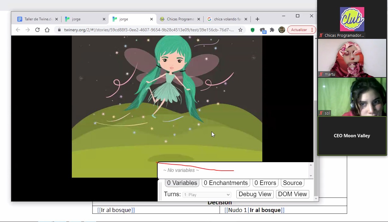 Hasta el 12 julio, se puede participar del taller vía online y gratuito. Se realiza mediante Zoom, para ingresar a las conferencias se difundirá el enlace correspondiente de la sala. Las inscripciones están abiertas en www.chicasprogramadoras.club. La próxima clase es el 21 junio a las 17hs. Es dictado por Jorge Godoy del Clúster de Videojuegos, El objetivo es desarrollar conocimientos básicos para diseñar, programar y crear videojuegos dentro del género de novela visual. Originalmente este formato (sound novel), proviene de Japón y está familiarizado con la estética del animé. Básicamente es una historia o narrativa ficcional, con escenarios y personajes estáticos o animados. Mediante diferentes hipervínculos, la trama evoluciona a medida que el lector interactúa con varios caminos posibles y finales alternativos