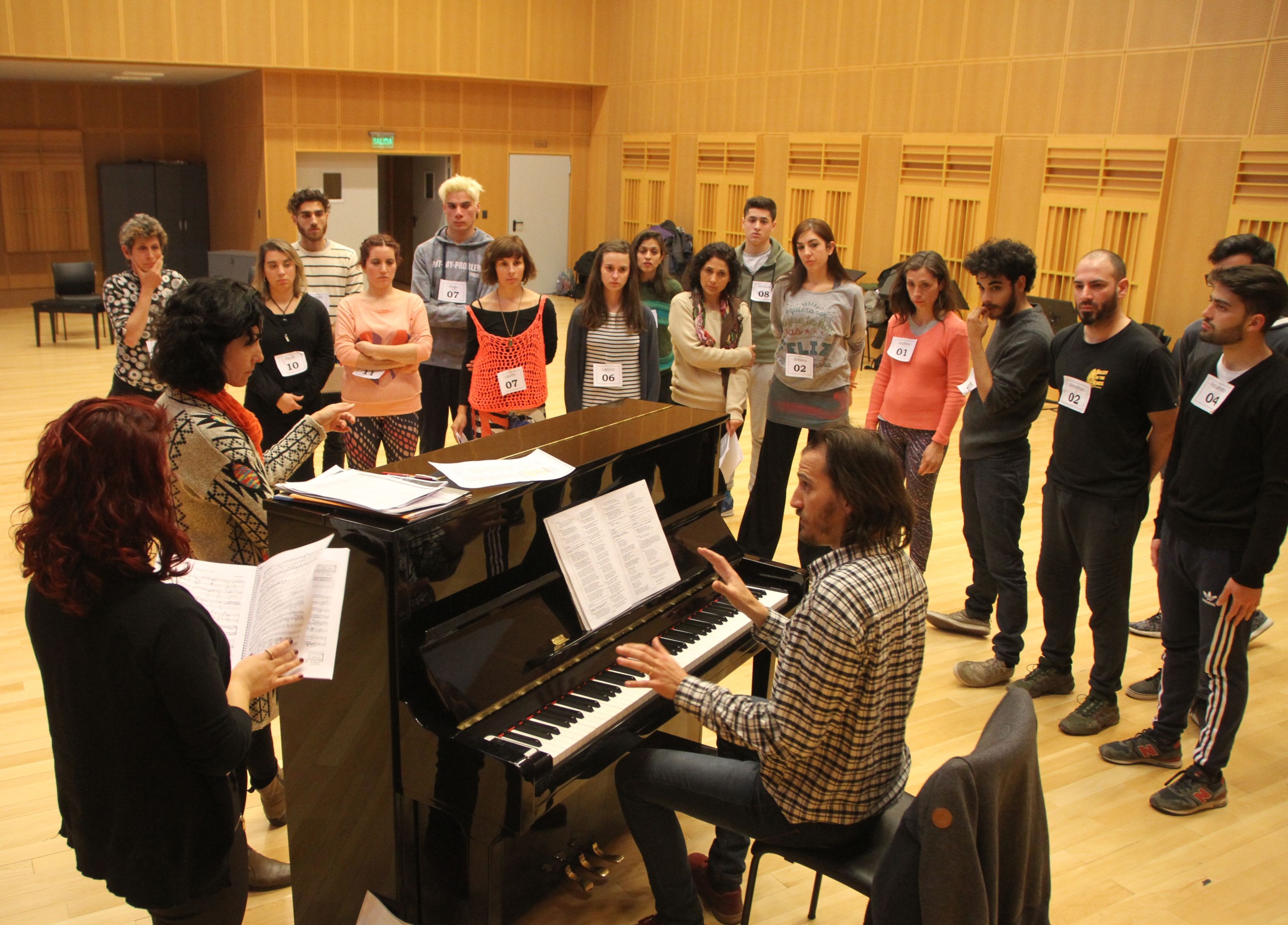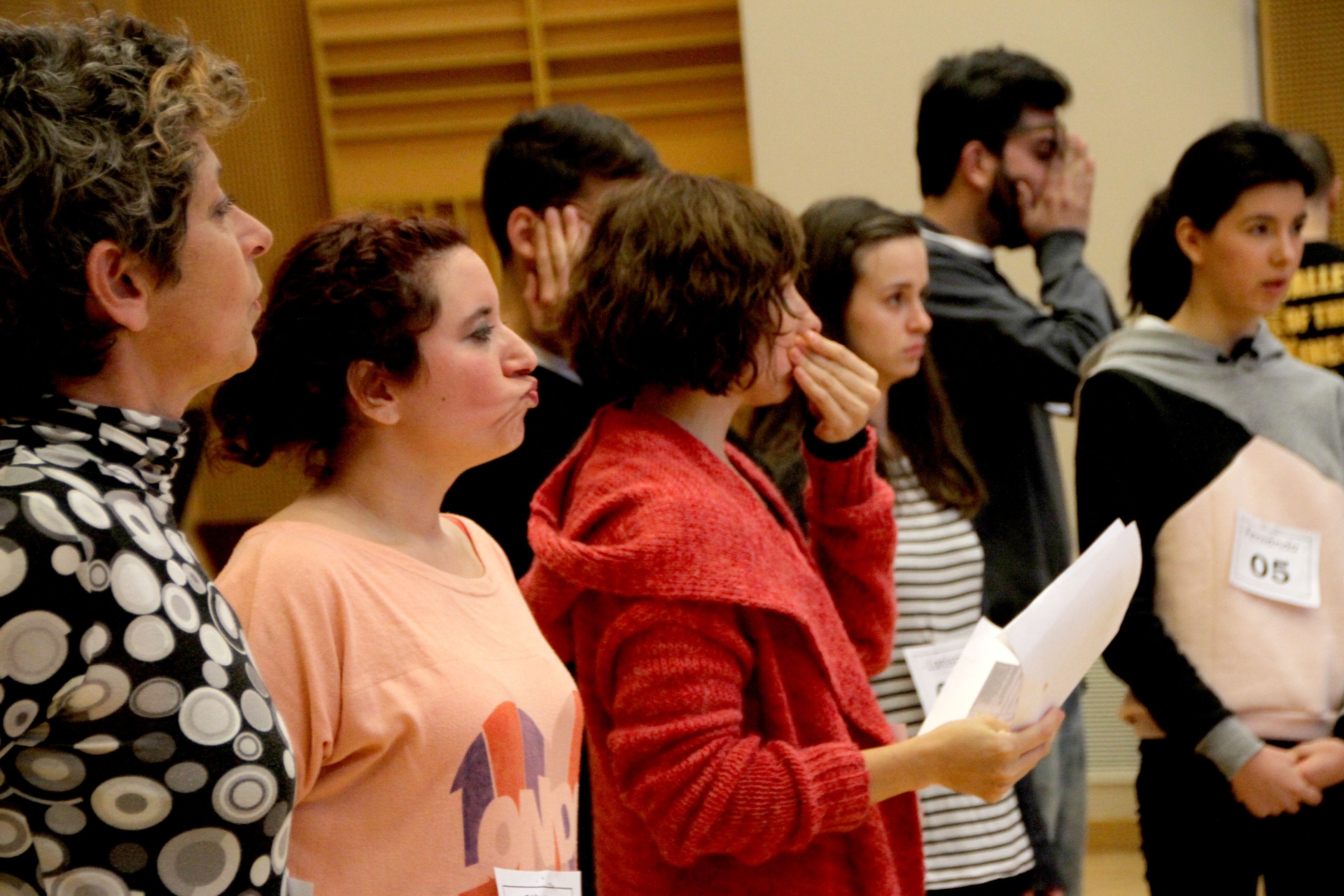 Luego, junto a Calderón acompañando en el piano, los participantes recitaron el texto que se les entregó para memorizar y marcar sus entradas; y en otra instancia, divididos en grupos, también tuvieron que resolver cómo darle vida a esos fragmentos y escenificarlos.