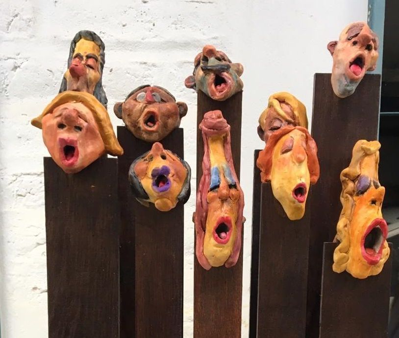 Luego de presentar la colección de dibujos Sin remilgos en abril pasado, el artista se abocó a cocinar una serie de rostros en materiales y técnicas diversas, incluyendo arcillas industriales y locales, madera nativa y metales, buscando dar un "pasito más" en su carrera, con "musas de testigo", como dijo, "intentado otras experiencias", rompiendo con lo que venía haciendo e incorporando nuevos modos expresivos en su obra, moldeando herramientas como el retamo.