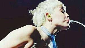 Estados Unidos, 26 de marzo.- Miley Cyrus brindaba un concierto en Miami, donde los fans no querían que acabara el espectáculo y le pedían más. La cantante, ni corta ni perezosa, decidió cumplir sus deseos, pero de una manera muy especial: bebió de su botella de agua y empezó a escupir encima de los asistentes, que por más raro que parezca, parecen haberlo tomado como una muestra de cariño.