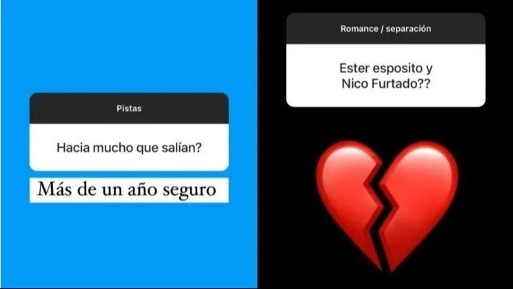 Si bien la influencer no proporcionó nombres, cuando le preguntaron directamente por Ester Expósito y Nico Furtado, la respuesta fue un emoji de un corazón roto. Ante otra consulta sobre la pareja, la influencer fue más concisa: "Separados", escribió.