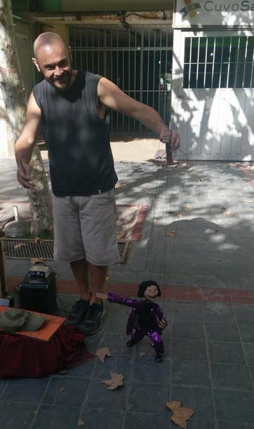 Ir caminando por la peatonal céntrica y de pronto encontrarse con Sandro y "La Mona" Jiménez, haciendo playback y meneando su menudo esqueleto, obliga a detener la marcha. Atraídos por esos simpáticos personajes en miniatura, los ocasionales transeúntes se reúnen a su alrededor y disfrutan no sólo de la música, sino también de sus logrados meneos, a manos de su hábil mentor. Son las marionetas que hace un par de días llegaron a San Juan, en el marco de una gira nacional que comparten con un violinista clásico y con Marcos Berón, titiritero oriundo de Olavarría (Buenos Aires), artífice de un espectáculo callejero a la gorra, ameno y divertido.