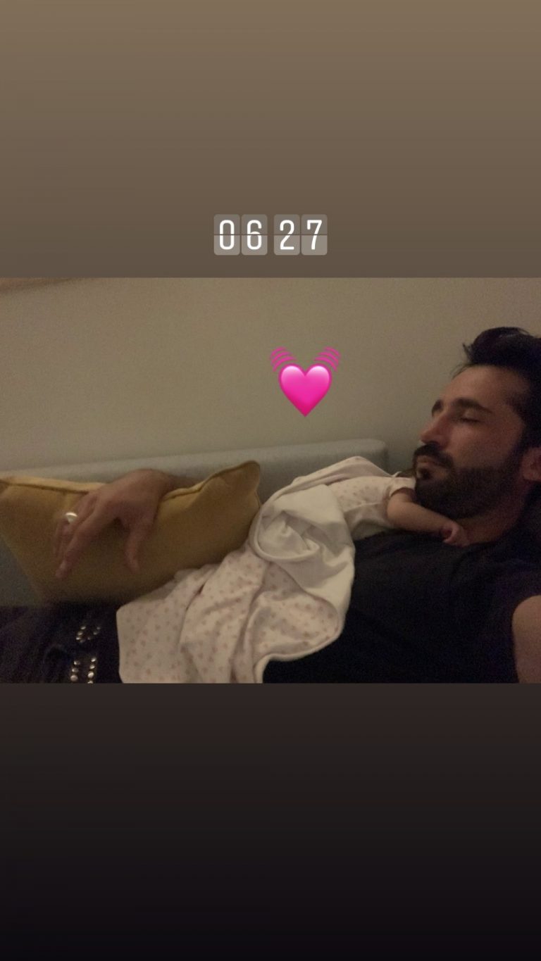 Antes, el flamante papá había publicado una tierna postal que los mostraba descansando juntos recostados en un sillón.