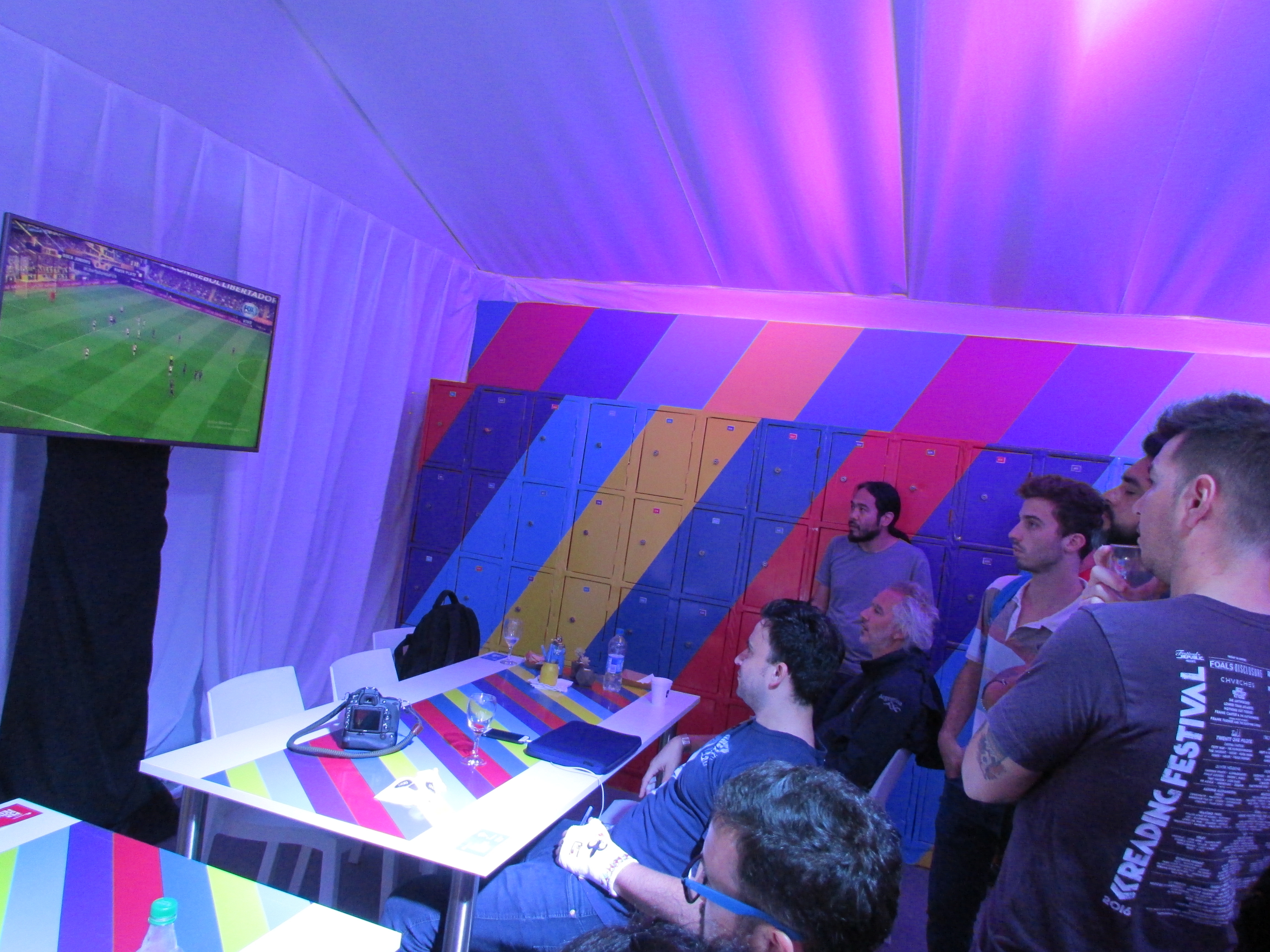 A lo largo del festival, algunos chicos siguieron la súper final Boca-River por la Copa Libertadores de América con celular y auriculares en mano. En diferentes sectores, se escucharon los gritos de gol, incluso en la voz de técnicos de la torre de sonido e iluminación y en el búnker de prensa oficial con más de 200 periodistas acreditados del país y del extranjero. Los fotógrafos, cronistas y camarógrafos observaron el partido por TV. Fue imposible no enchancharse, sobre todo para los hinchas del xeneize o del millonario que, después del empate (2 a 2), continuaron sus labores.