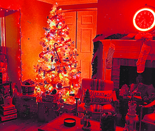 bonita, árbol incluido con un sinfín de luces, cinta y el típico bastón de dulce.