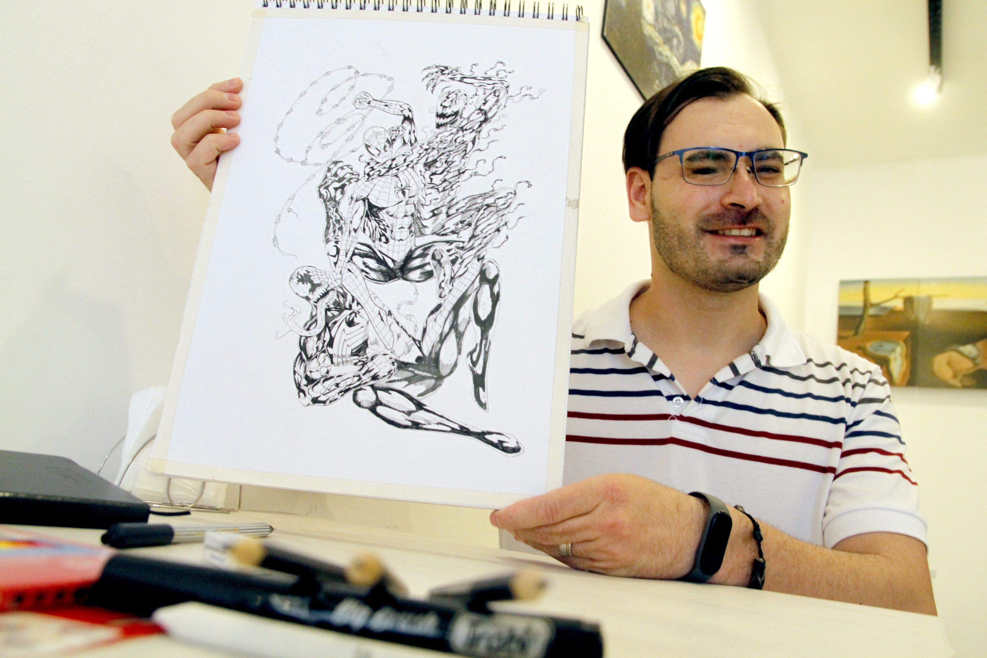 "El director del Club del Arte, Sebastián De la Colina, me convocó, me dijo que me gustaba dibujar y me animé. Tuvo una muy buena respuesta, fue muy fructífero, así que no me lo esperaba" comentó el profe que es un autodidacta del dibujo, confeso fanático de los comics y además es profesor de Química en dos escuelas de Chimbas". Aprendí siguiendo a los maestros dibujantes de las historietas que me gustaban. Me acerqué al comic por mi papá, el era un gran lector y me lo transmitió. Y siempre me gustó dibujar lo que leía, pero nunca fui a una escuela de arte", resumió Francisco sobre su relación con el género que lo puso al frente del novedoso taller, que esta semana largó su primer ciclo del año, -aún tiene cupo- después de un auspicioso inicio el año pasado.