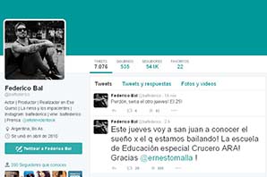 San Juan, 12 de junio.- Mientras sigue pasando las distintas instancias del Bailando 2015, Federico Bal piensa en su sueño. El actor, que baila por los chicos de la escuela de educación especial ARA Crucero General Belgrano, de San Martín, anunció que llegará a la provincia el próximo 25 de junio para conocer a los alumnos.