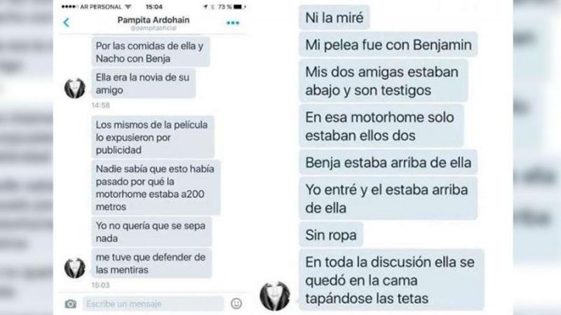 Además hizo mención a que dos amigas la estaban esperando y fueron testigo del hecho. "En ese motorhome sólo estaban ellos dos. Ni la miré (a La China). Mi pelea fue con Benjamín", escribió.