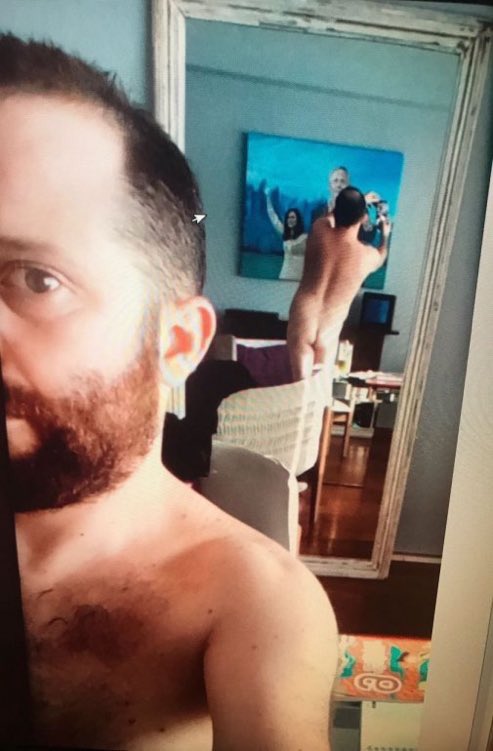 Ottavis está de espaldas a un espejo y se refleja el cuerpo del dirigente político completamente desnudo mostrando la cola.