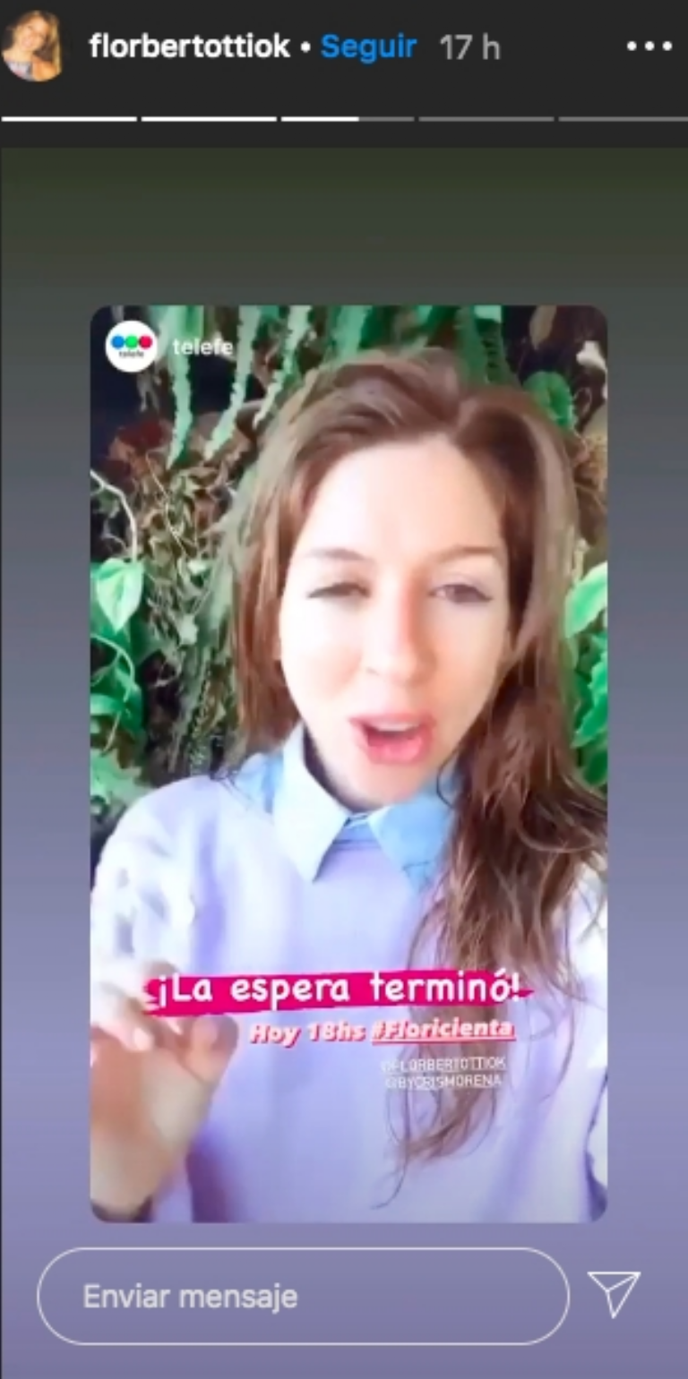 Por la tarde, Florencia había grabado un video en el que le hablaba a sus seguidores. "Finalmente, llegó el gran día. Hoy a las 18 no te pierdas Floricienta por Telefe", decía.
