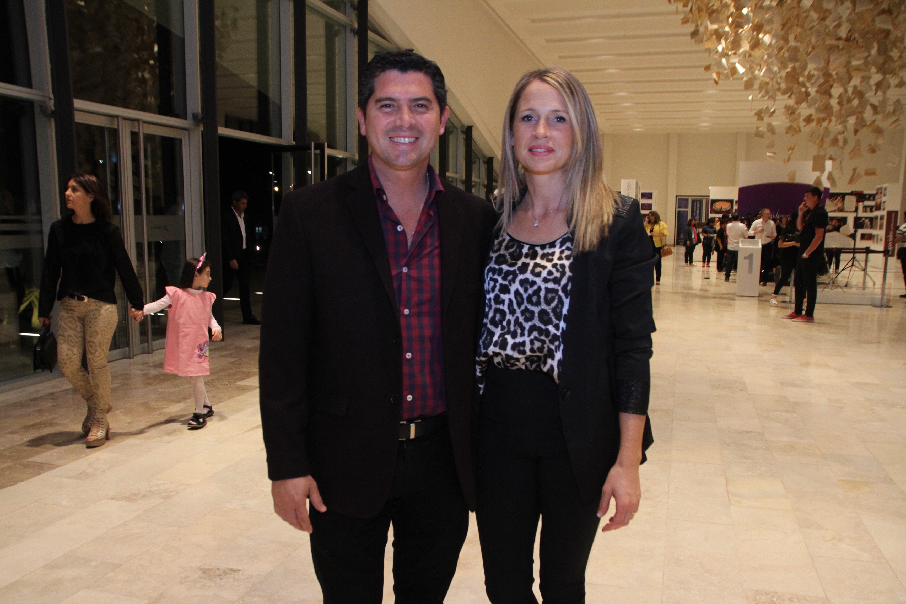 El intendente de Santa Lucía, Marcelo Orrego, junto a su esposa Eliana Albornoz.