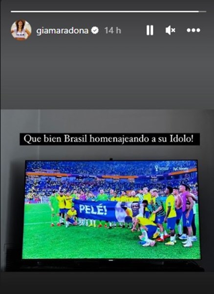 "¡Qué bien Brasil homenajeando a su ídolo!", publicó Gianinna en una historia de Instagram en la que se ve cómo los futbolistas brasileños portaban una bandera de Pelé.