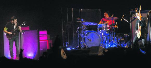 Soberbia y descomunal fue la actuación de Divididos -el sábado por la noche en el estadio Aldo Cantoni- en su regreso a tierras sanjuaninas, luego de 8 años de ausencia, desatando la alegría de unos 6 mil fans. El legendario trío con Ricardo Mollo a la guitarra, Diego Arnedo en el bajo y el explosivo baterista Catriel Ciavarella, repasó por más de tres horas sus 25 años de trayectoria con lo mejor de su repertorio, desde los más clásicos hasta las renovadas obras de Amapola del 66. Canciones como "Senderos", "Tomando mate en la paz", "Azulejo", "¿Qué tal?" "Salgan al sol" y "El 38", fueron parte de la primer descarga de artillería al comienzo del show. Luego fue el turno de "Jujuy" con la introducción del fragmento del clásico "Tilcara" del poeta Germán Walter "Churqui" Choquevilca. En un momento de relax Ricardo buscó un banco para sentarse: "Los 25 años pesan", bromeaba y de inmediato se lució con "Spaghetti rock", "Par mil" (luz del alma) y un clásico de Sumo: "Sisters" en compañía del guitarrista Diego Florentín. Y vino la hora emotiva cuando Mollo recordó a Luca Prodan con "Mula plateada" y después a Pappo y Spinetta: "Ellos se fueron, pero lo dejaron todo". El punto máximo vino con "Sucio y desprolijo", "Rock Rasputín" y "Mejor no hablar de ciertas cosas". Para un cierre monumental, el cantante se despidió de San Juan: "Gracias por recibirnos y les pido disculpas, espero que no pasen otros 10 años para volver a verlos" y con toda la gloria y ovación ganada, Mollo bajó del escenario para decir el adiós estrechando la mano uno por uno a sus seguidores.