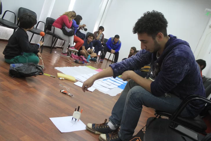 Esta forma de expresión está en boga actualmente en San Juan y a su vez, promovida por algunos espacios institucionales. De hecho, fue invitado a participar de los talleres de vacaciones gratuitos que ofrece el Centro Cultural Conte Grand, que organiza el Ministerio de Turismo y Cultura. En 8 clases consecutivas, Pagliarosi interactuó con 15 jóvenes, en los conceptos de esta disciplina con el fin de crear una escultura sonora. Los chicos fueron adquiriendo conocimientos a la vez que expandieron sus habilidades para crear sonidos con objetos, pero partiendo de una base en imágenes dibujados por ellos mismos de diferentes maneras. Así lo explica el artista italiano: ‘Experimentamos con herramientas, en este caso, como cada artista, pintor o escultor, deben hacer un boceto o un diseño para presentar la obra que producirán, los chicos están bocetando las partituras en el papel para luego llevarlo a la práctica.