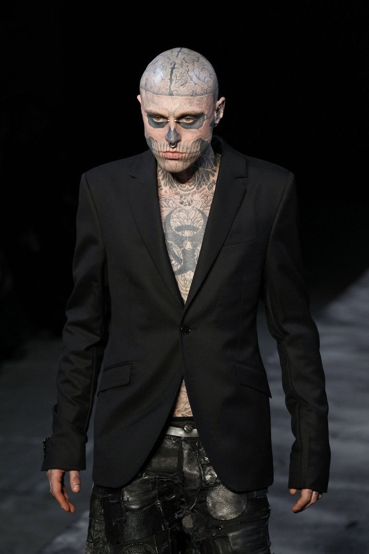 El nombre con el que lo había bautizado el mundo de la moda era a causa de que tenía el 90% de su cuerpo tatuado y la mayoría de estos dibujos eran huesos que le daban el look de muerto viviente.