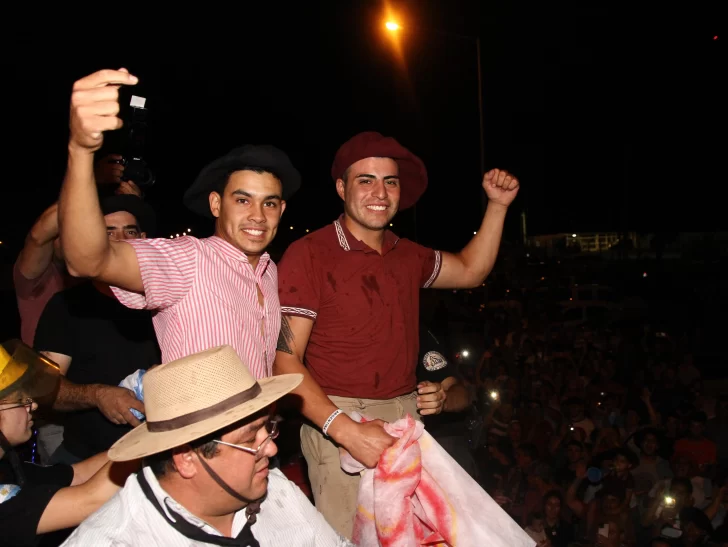 "Estoy muy contento y muy agradecido a Dios, le pedí mucho a Él que me ayudara, que estuviéramos todos bien, que todos volviéramos sanos’ es lo primero que atinó a decir sobre este título que se trajo en buena ley, nada menos que en su debut en el Festival, adonde su familia estuvo alentándolo. "Todas las noches las disfruté, cada vez que largaba era una contentura, algo en el alma que no sé… Cuando iba jineteando estaba feliz!’, agregó el muchacho, sencillo y amable, que en esos momentos tampoco reparó en la cantidad de gente que estaba mirándolo, en directo y por la TV pública.