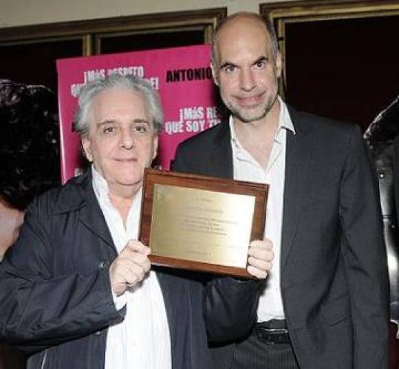 Ayer, luego de la función de "Más respeto que soy tu madre", Antonio Gasalla recibió una plaqueta del jefe de gabinete porteño, Horario Rodríguez Larreta, por superar el medio millón de espectadores.