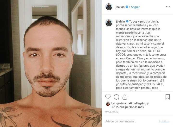 En una publicación en su cuenta de Instagram, donde acumula más de 33 millones de seguidores, José Álvaro Osorio Balvin -tal su nombre original- realizó un contundente descargo en el que detalla las dificultades que atraviesa por la ansiedad.