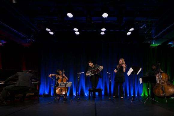 El bandoneonista Juan Pablo Jofré Romarión finalmente tocó en Google, como tenía previsto. El sanjuanino radicado en Nueva York había sido convocado por el programador y director de los conciertos del mega buscador, Irwin Boutboul, para brindar un concierto en la empresa para los 500 empleados. La performance (foto) duró 45 minutos, tocó junto a su quinteto y la gran violinista invitada Lara St. John. En el piano estuvieron Pablo Cafici, Amy Kang en violoncello y Chris Johnson en contrabajo.