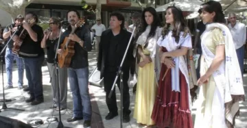 Jóvenes y adultos que transitaban por el microcentro embutidos en sus actividades cotidianas, en trámites y corridas de siempre le pusieron pausa a su rutina deteniendóse en el Cruce de las Peatonales. Allí, formaron un círculo para escuchar gustosamente el sonido rugiente de guitarras cuyanas, que ayer sobre el mediodía decoraron la presentación oficial de la Fiesta de la Tradición jachallera. En un clima de tonada, rancho y tradición que ya empieza a respirarse, las autoridades de Cultura del departamento montaron un mini show musical en la intersección de Rivadavia y Tucumán. Laura Castro, Los Lucero y el Chango Huaqueño ofrecieron un recital a pleno sol, ejecutando las obras populares del cancionero sanjuanino. Como preludio de lo que sucederá en Jáchal desde el próximo viernes y hasta el domingo 20 de noviembre (en las noches centrales y las actividades paralelas), los intérpretes jachalleros compartieron unas entretenidas serenatas con el público en el corazón de la ciudad. La Paisana Mayor Stella Marys de Miguel y sus escoltas, por su parte, no dejaron de regalar sonrisas a niños y grandes, repartir folletos del festival y tomarse fotografías junto a los artistas y el público. En tanto, varios espectadores anónimos no se guardaron las ganas y se animaron a bailar con ellas. Luego del número de Castro, el Chango Huaqueño tomó la posta e interpretó canciones de Buenaventura Luna y algunos gatos. Finalmente, todo el grupo entonó Vallecito de Huaco, que logró emocionar a varios adultos mayores que, sin olvidar la letra, tarareaban el famoso recitado que escribió Eusebio Dojorti. Ahí nomás, uno de ellos sacó el celular, llamó a un pariente y levantó el aparato para hacerle escuchar la canción en boca del Chango.