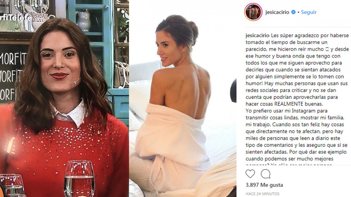 “Les súper agradezco por haberse tomado el tiempo de buscarme un parecido, me hicieron reír mucho y desde ese humor y buena onda que tengo con todos los que me siguen aprovecho para decirles que cuando se sientan atacados por alguien simplemente se lo tomen con humor!”, recomendó Cirio.