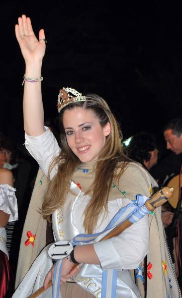 La bella joven de 20 años (que ingresó en la recta final, tras la baja de Nadia Balmaceda), representante del Club Sportivo Racing y estudiante del traductorado de Inglés y Alemán, saludó a su gente con profunda emoción, flanqueada por la Primera Paisana, Natalia Ayelén Domínguez (de la Agrotécnica Manuel Belgrano,que se alzó con 8 votos) y Cintia Gabriela Mallea, Segunda Paisana (de Pampa Vieja, que obtuvo 3 votos).