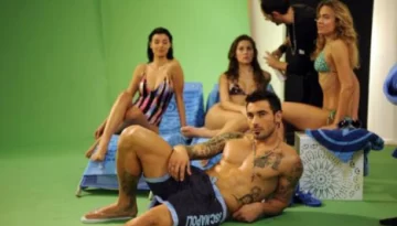 El jugador del Nápoli posó junto a voluptuosas modelos italianas. El "Pocho" se lució entre sus compañeros de plantel, incluido José "El principito" Sosa.