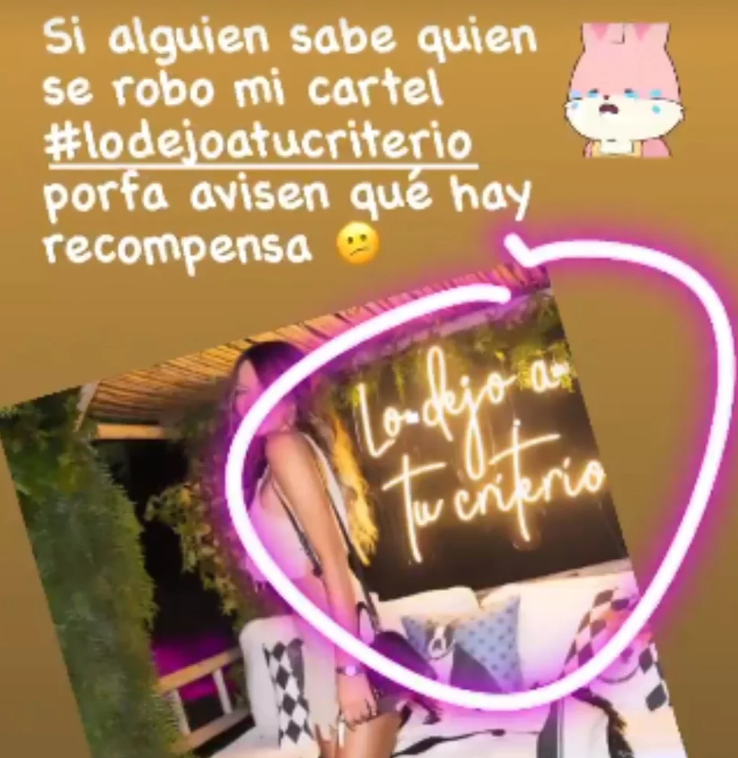 Pero entre tanto DJ y baile, y a pesar de haberse divertido como nunca, en las últimas horas Jelinek hizo una “denuncia” en sus redes sociales y pidió ayuda a sus seguidores. “Si alguien sabe quién se robó mi cartel #lodejoatucriterio, porfa avisen que hay recompensa”, escribió en una story en la que mostraba una foto suya posando y, detrás, se vislumbraba el cartel luminoso con su frase fetiche, que formaba parte de la decoración que encargó especialmente para ese día y que fue realizada por el reconocido ambientador Ramiro Arzuaga. Al parecer, uno de los invitados quedó maravillado con esa inscripción y pensó que podía llevársela del lugar, quizás, como un souvenir.