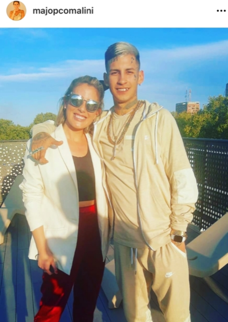 Pérez Comalini además posó con un look muy cool junto a la bebida, y se mostró divertida y simpática con Elian Ángel Valenzuela, tal es el nombre real del cantante de "L-Gante RKT" y "Uno más uno".