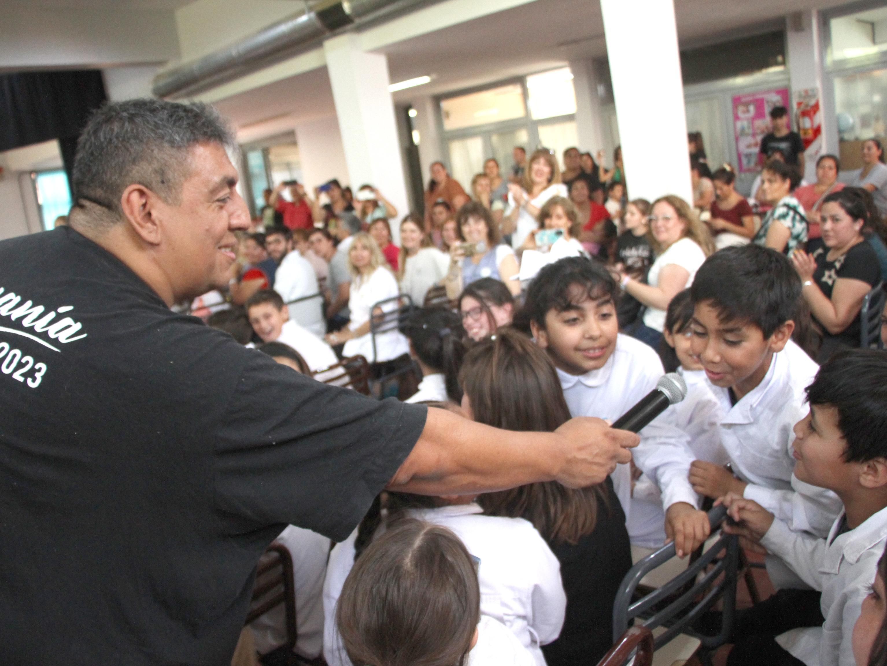 Ernesto Villavicencio fue con el micrófono a cantar junto a los niños y recitaron Vallecito.