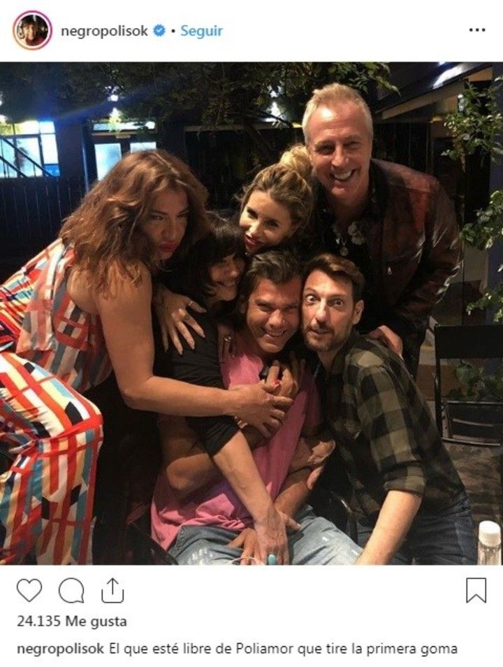 También compartió otra imagen de la celebración pero no sólo con la Negra sino también con el resto de sus amigos: "Cumple de mi amiguita tan genia. ¡El grupo más poliamor del mundo! ¡Los amo!".