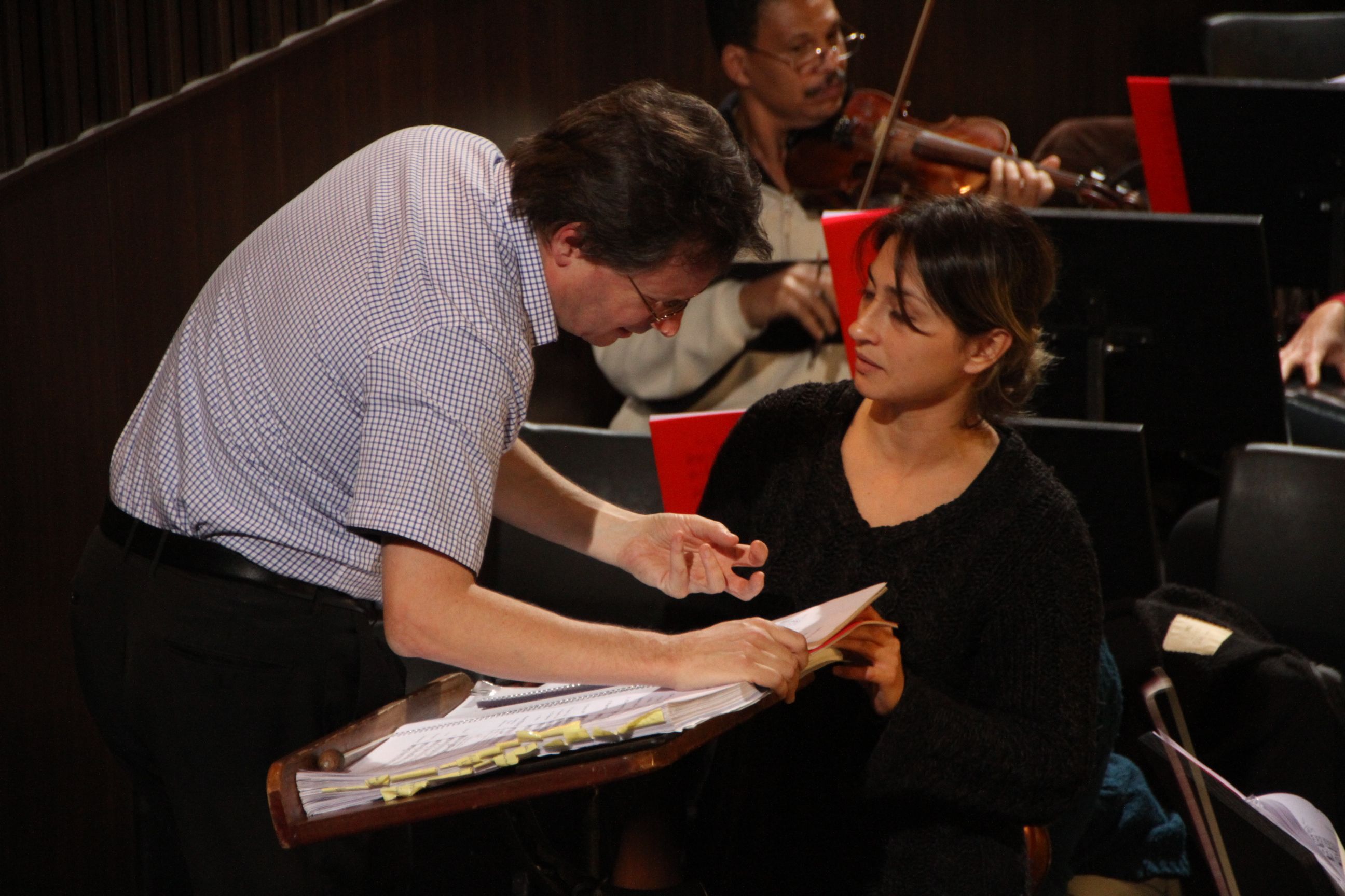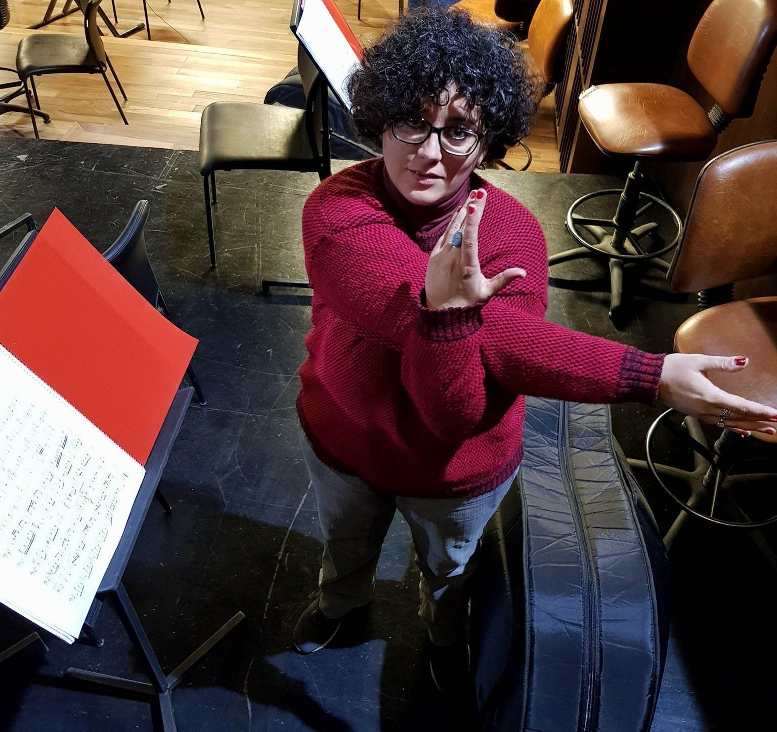 "¡Momento!". "¡Otra vez!", dice estricto cuando observa que una bailarina giró en otro tiempo y que la formación debe corregirse para ir a su ritmo, después de un corto cruce de palabras con el coreógrafo. Entonces, retoma para que todo salga con precisión de relojería; o hace un stop con sus manos cuando Galizzi imparte nuevas indicaciones a la compañía; o reemplaza un instrumento con su voz, para que todo fluya armónicamente con un "Papapa papapa…!".