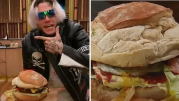 El plato consiste en una hamburguesa de carne XXL con huevo frito, panceta, cebolla caramelizada, aderezo de yogur y palta, acompañada por unas clásicas papas fritas, y estará presentado en una caja junto a otras sorpresas destinadas a los fanáticos de "El Emperador" -como se autodenomina el joven de 28 años-.