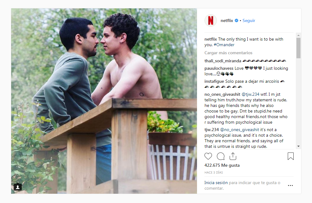 Para promocionar esta historia Netflix decidió compartir una imagen a través de sus redes sociales, pero… un comentario homofóbico de un usuario generó que la plataforma de contenidos tuviera una respuesta verdaderamente brillante.
