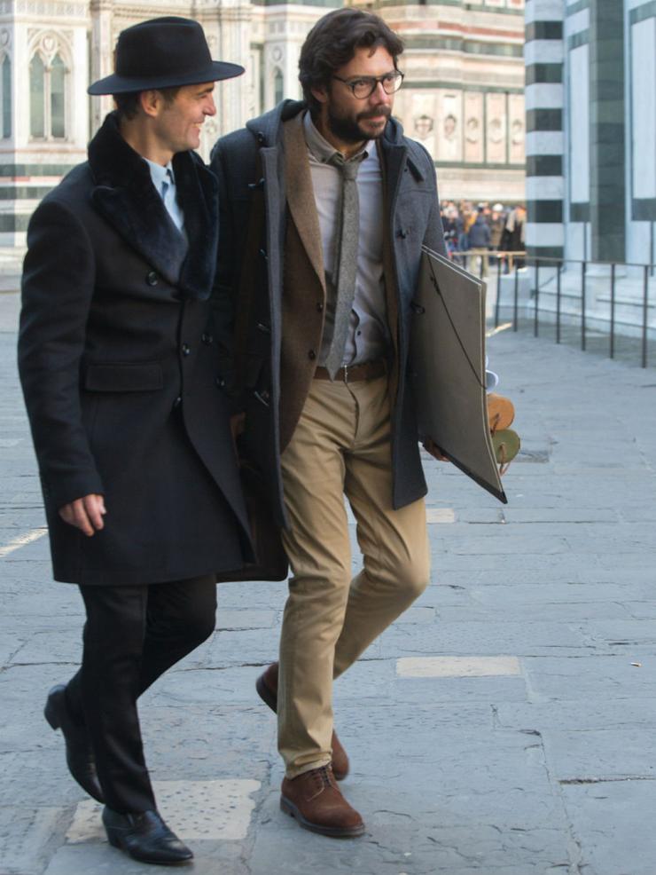 La tercera temporada de La casa de papel se está haciendo desear, pero surgieron nuevas imágenes que seguramente aplaquen de manera momentánea la ansiedad de los fanáticos. En las mismas se puede ver a los actores Alvaro Morte ("El profesor") y Pedro Alonso ( "Berlín", quien estuvo de visita en la Argentina en abril del año pasado, para alegría de sus seguidores) filmando algunas escenas en Florencia, Italia. Como era de esperarse, los detalles de las secuencias han sido cuidadosamente preservados por Netflix .