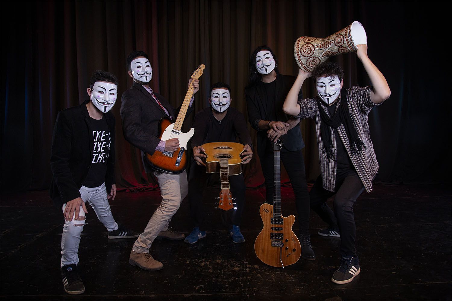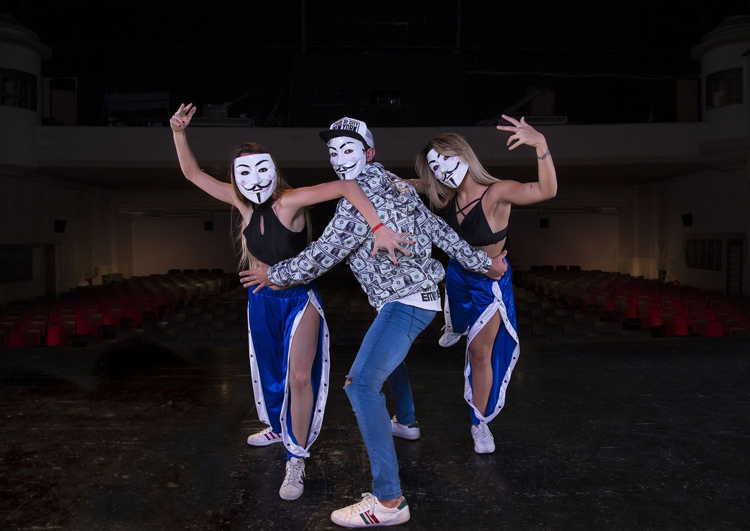 "Buenos días San Juan, estas son las bases y condiciones para el espectáculo del 28 de junio en el Municipal’, dice una modulada voz masculina de acento español, mientras la cámara muestra a una serie de sujetos en la misma sala, con los rostros cubiertos por las famosas máscaras de Guy Fawkes, popularizadas por el grupo de activistas Anonymus. Las reglas del show, que recita uno de esos personajes, son claras: ausencia de líderes y jerarquías, coreografías libres y admiración y respeto mutuos. "Esperadnos’, finaliza el video de apenas 20 segundos, que ya circula en las redes sociales y en Whatsapp, y que desde el vamos ha generado mucha curiosidad entre los sanjuaninos. "¿Y esto?’ "¿De qué se trata?’, comentan. Pues de "Anónimo’, un show de danzas a cargo de diferentes compañías locales y con música en vivo, producido por el Cine Teatro Municipal de Capital, donde -al decir de los organizadores- lo que importa es el espectáculo en sí, más allá de las caras más o menos conocidas que lo llevarán a escena. La idea del anonimato llega al clímax con los propios protagonistas: los bailarines y la banda, cuya identidad será una incógnita para el público hasta último momento, y por eso sus rostros también están cubiertos con las máscaras.