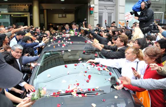 Tanto el cortejo como la llegada al cementerio fue en medio de una marea de seguidores furiosa por no poder despedirse del chocolatero, cuyo cuerpo pasó la noche en una sala fúnebre a la que sólo ingresaron 9 personas, entre ellas: su madre, Jorge y Eduardo, los hermanos; y su expareja y padrino de sus hijos, Gustavo Martínez. En Twitter, los famosos se mostraron molestos por la decisión de la familia de no dejar entrar a los fans.
